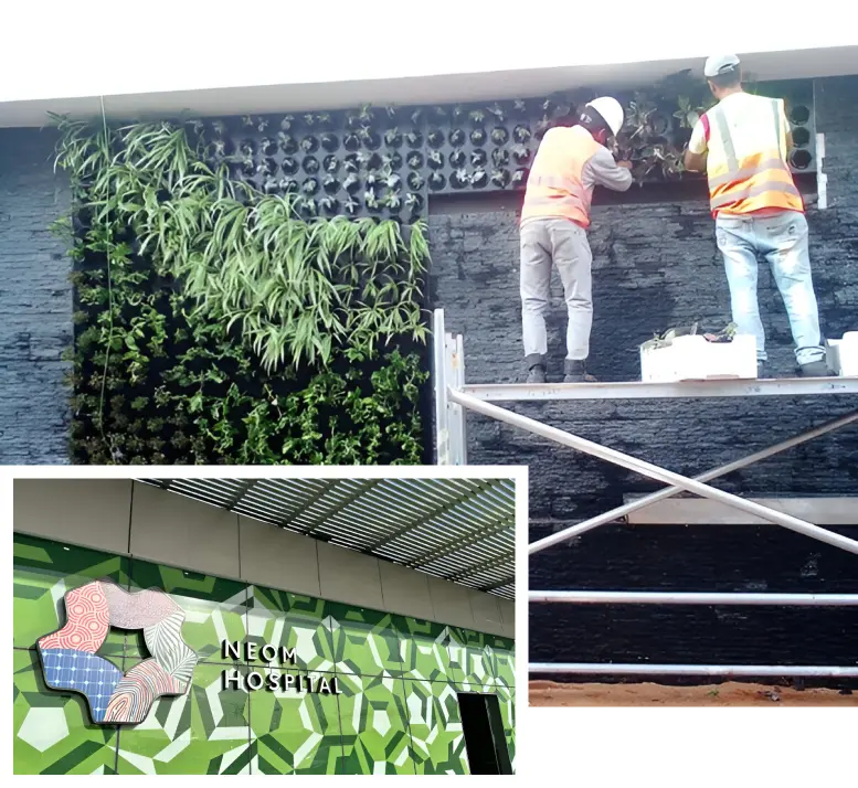 تصميم الجدران الخضراء: يُدخل فريقنا المُختص الطبيعة إلى منزلك، مما يُحسّن المظهر ويُعزز الصحة والاستدامة